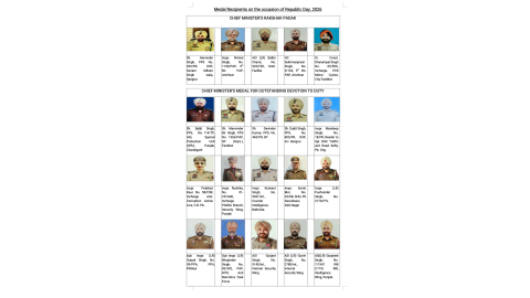 5 ਪੁਲਿਸ ਕਰਮਚਾਰੀਆਂ/ਅਧਿਕਾਰੀਆਂ ਨੂੰ ਮੁੱਖ ਮੰਤਰੀ ਰਕਸ਼ਕ ਪਦਕ ਪੁਰਸਕਾਰ ਨਾਲ ਕੀਤਾ ਜਾਵੇਗਾ ਸਨਮਾਨਿਤ ...